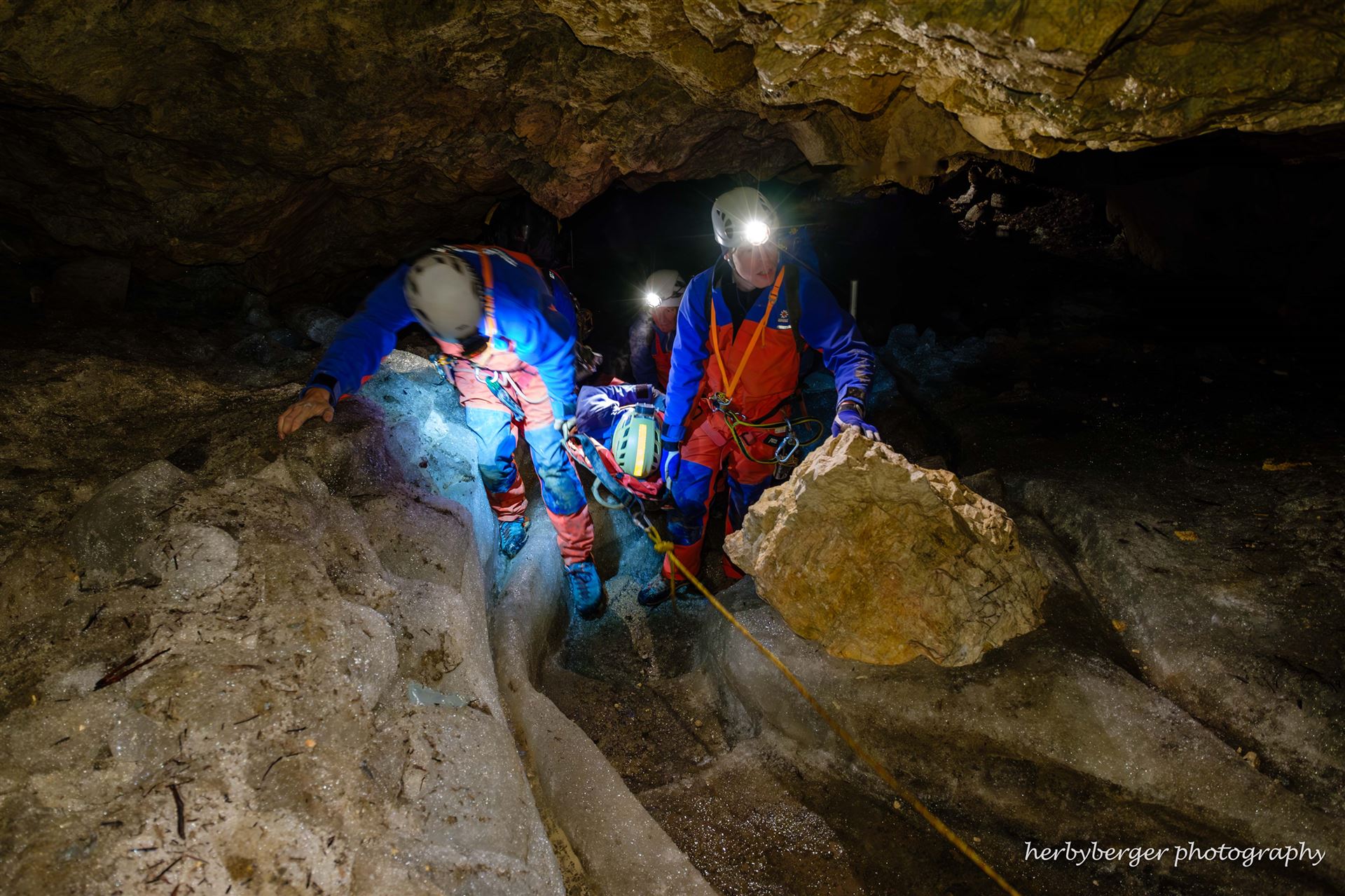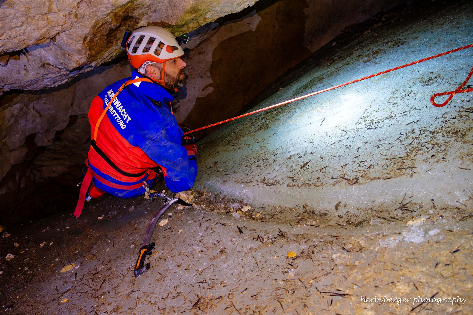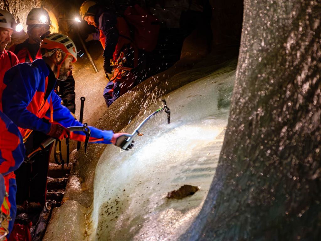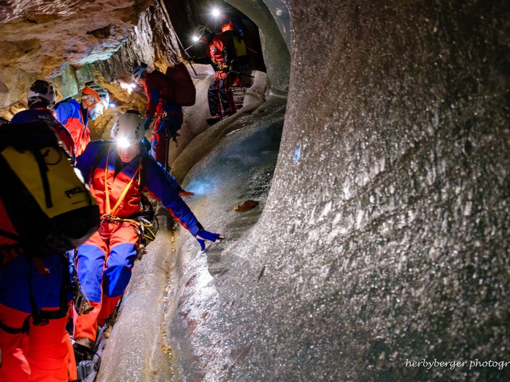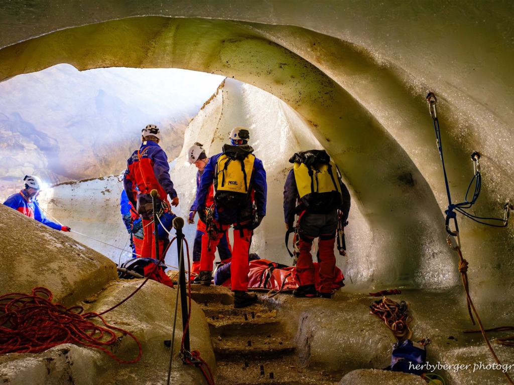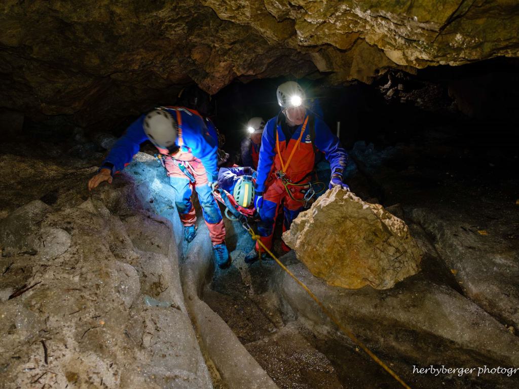 Die Bergwacht führte im Oktober 2024 eine Höhlenrettungsübung in der Schellenberger Eishöhle durch.
